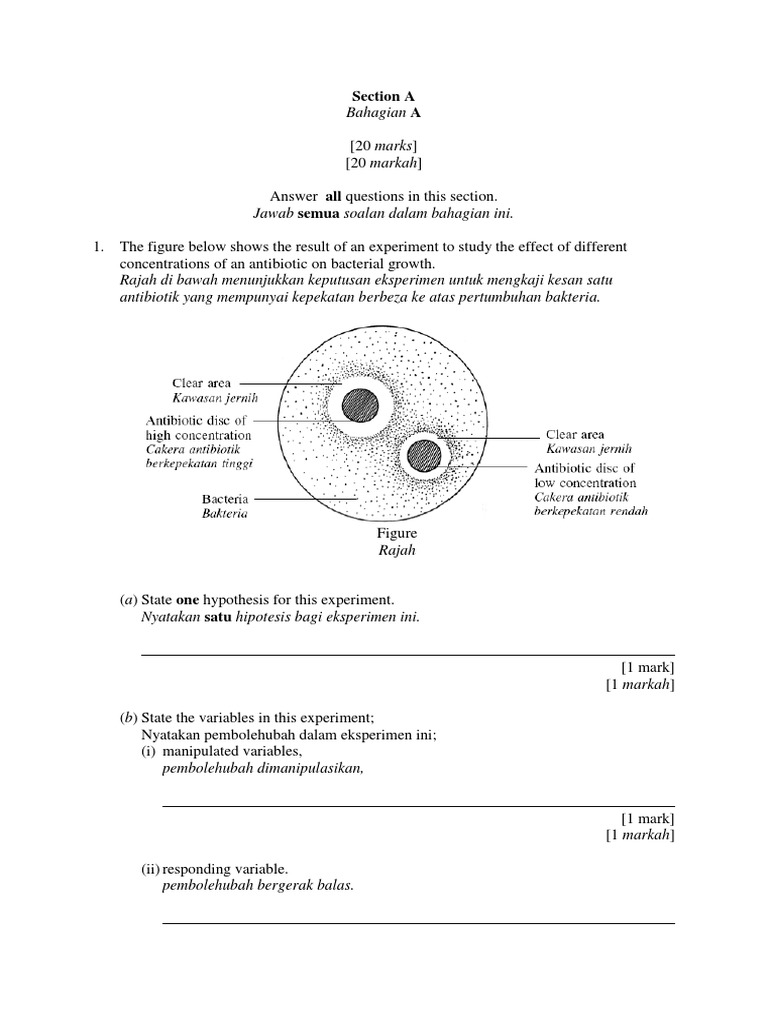 View flipping ebook version of CONTOH KERTAS SOALAN AMALI SAINS BERSEPADU 2021 published by Norhayati Surayaman on 2020-12-21. PEKA Aim To study the effect of antibiotic concentration on bacterial growth. Jawab semua soalan dalam bahagian ini.